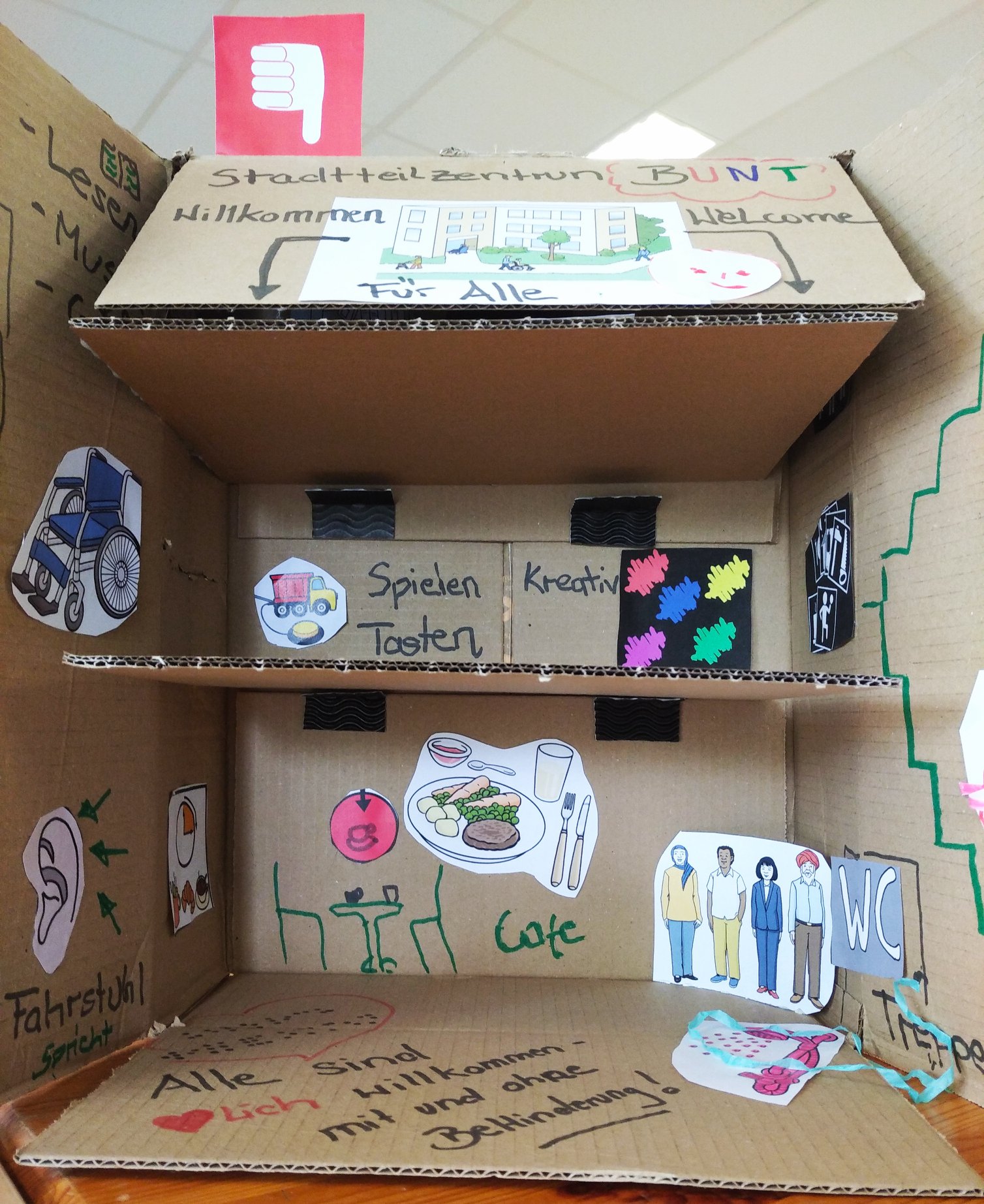 In der letzten Woche waren wir mit dem Vska im Nachbarschaftshaus Ostseeviertel und haben mit Expert*innen in eigener Sache und Mitarbeiter*innen verschiedener Stadtteilzentren Barrieren erkannt und überwunden. Dazu haben wir die barrierefreien Stadtteilzentren unserer Träume gebaut. Ein Traum war am Ende auch die spontane Trommelaktion, der Dank mit Blumen und selbstgenähten Masken von den Teilnehmer*innen. Trotz neuer, durch Corona geprägter Arbeitsrealität, war die Schulung ein voller Erfolg!